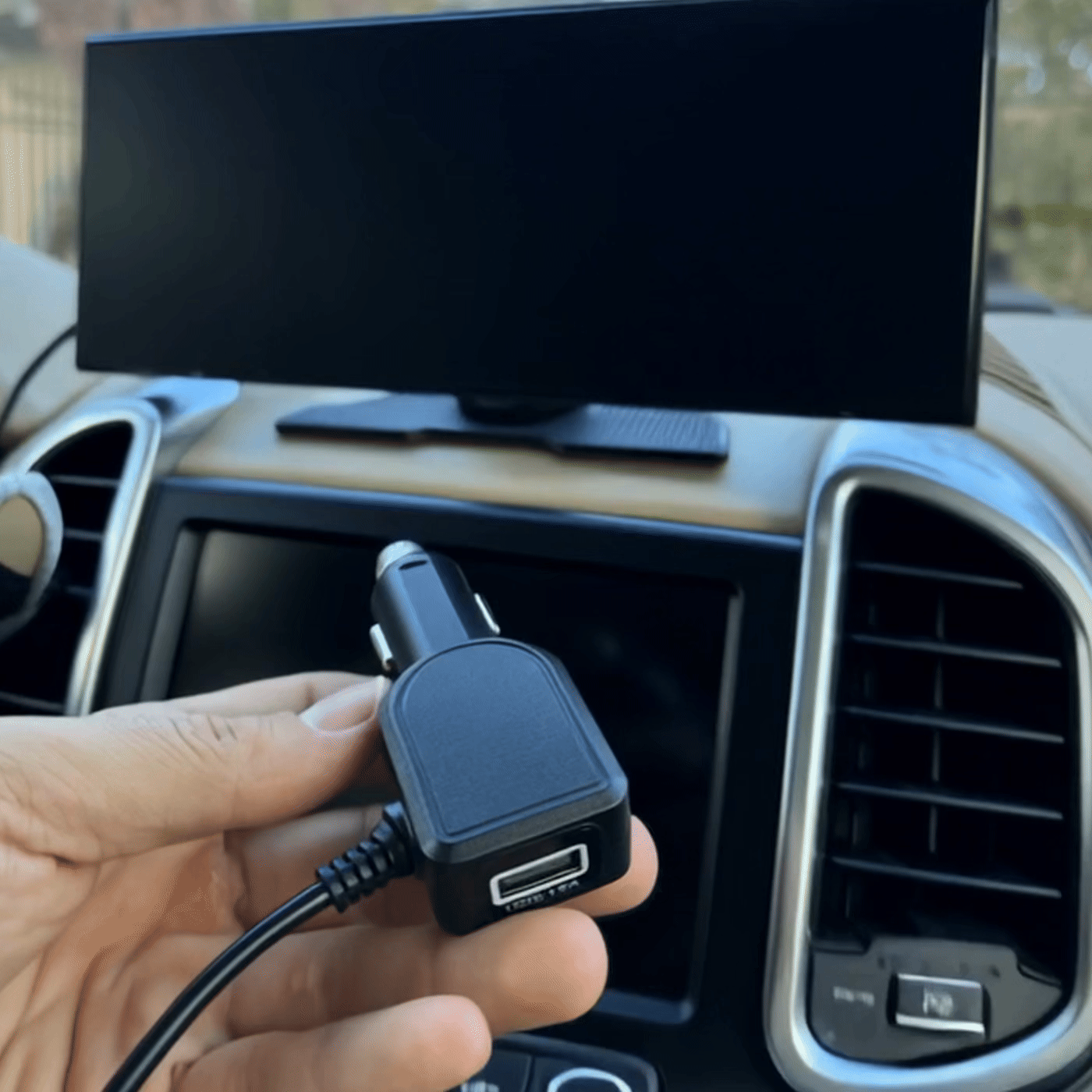 Свържете адаптера в 12V запалката. При желание може да се използва и USB/Type C портът на автомобила, но имайте предвид, че необходимият кабел не е включен в комплекта.