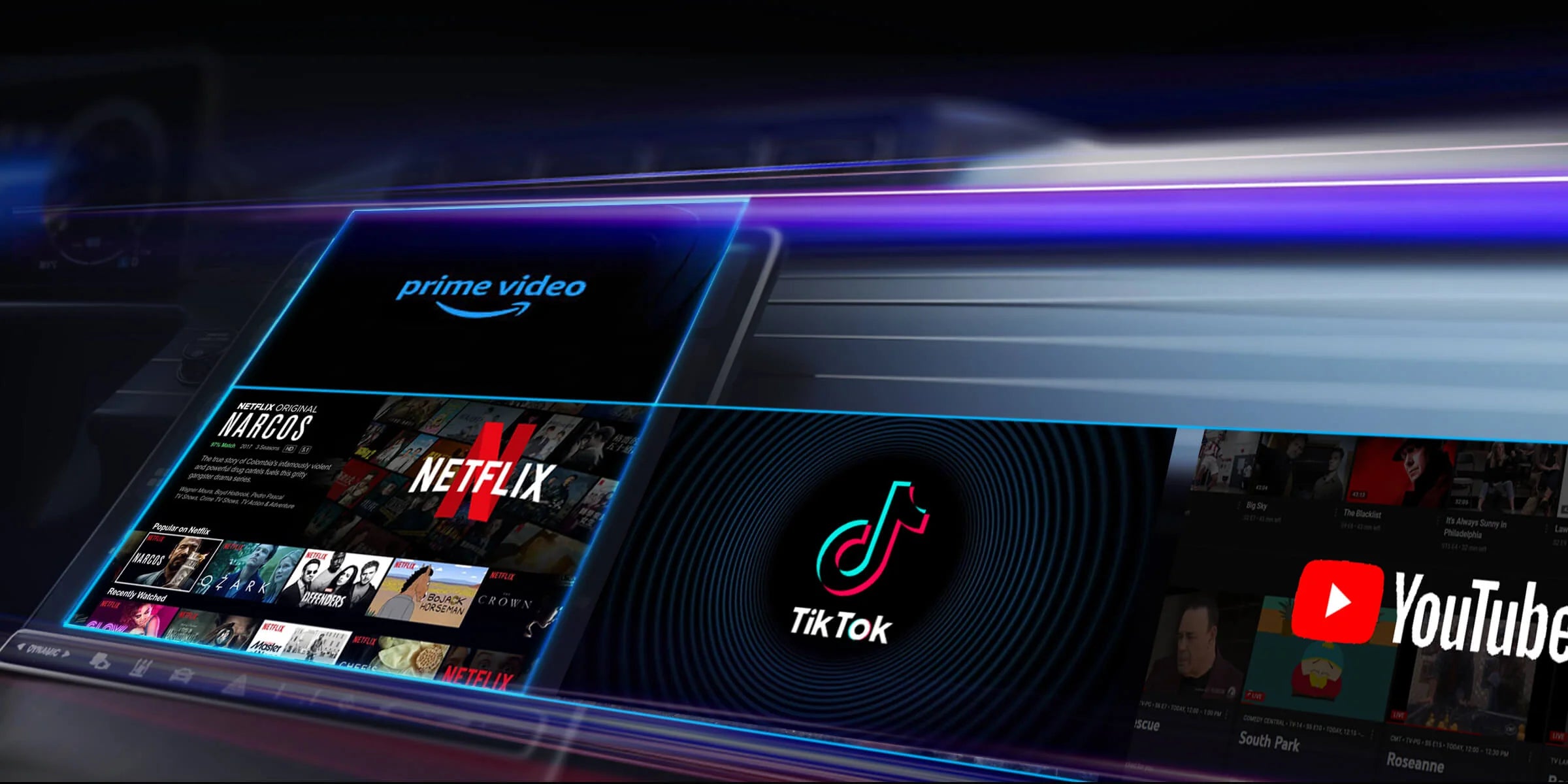 - Вграден стрийминг (YouTube, Netflix, Spotify и др.)